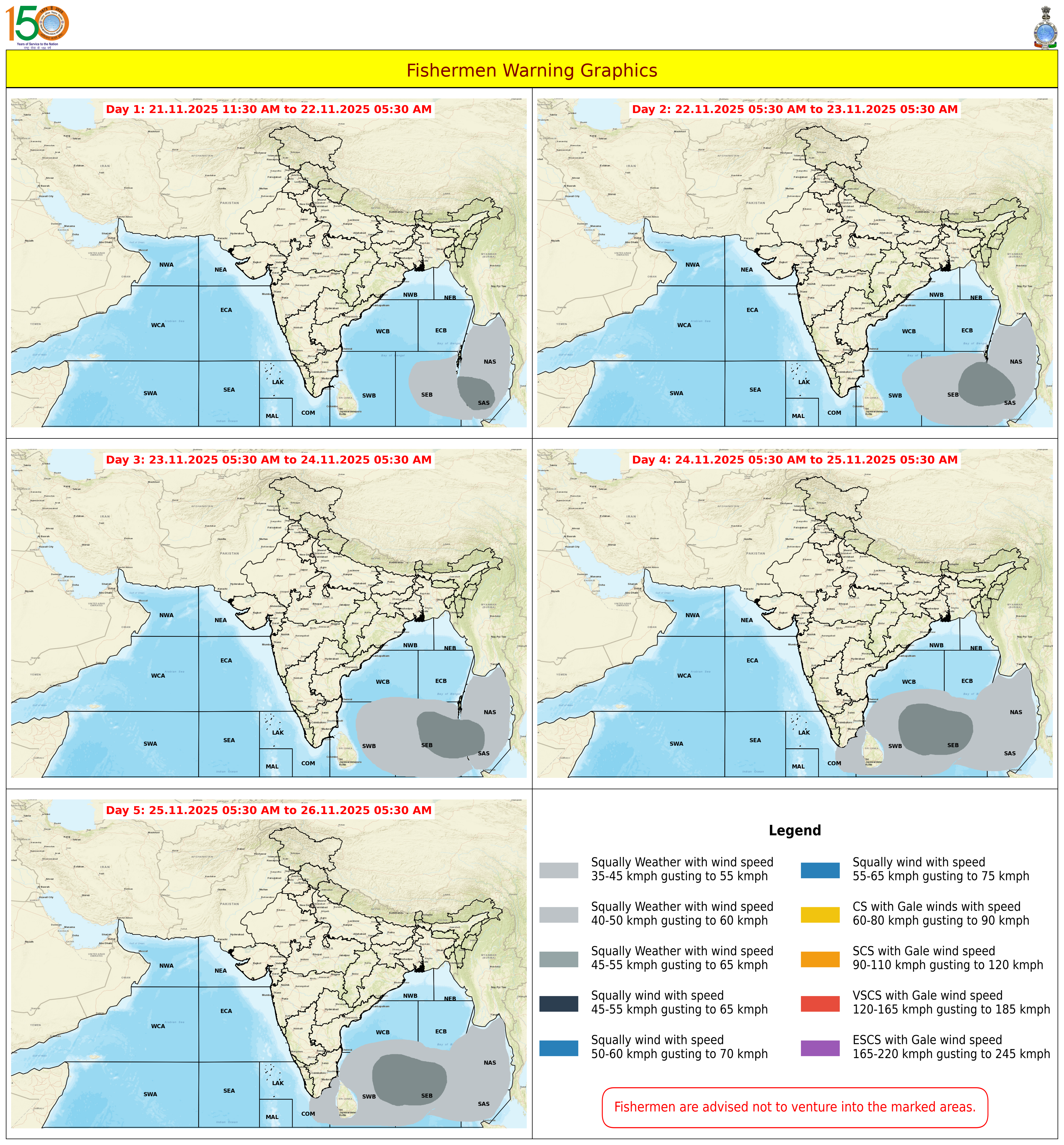 Fishermen Warning Graphics based on 03:00:00 UTC of 21-11-2025 |