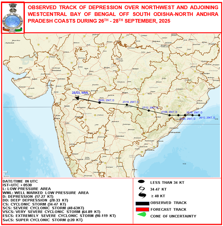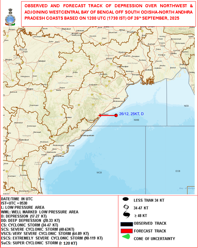 Observed & Forecast Track based on 12:00:00 UTC of 26-09-2025 |