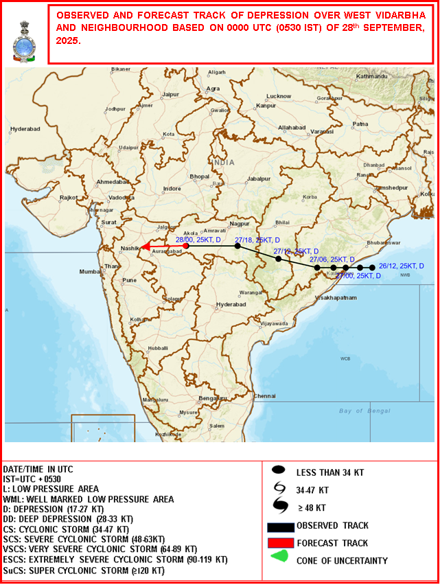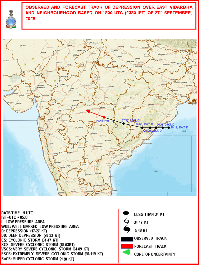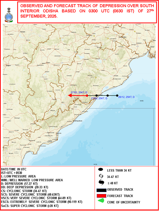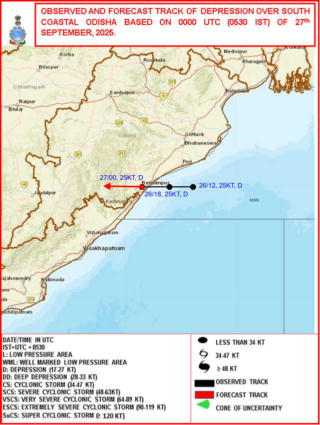 Observed & Forecast Track based on 12:00:00 UTC of 27-09-2025 |