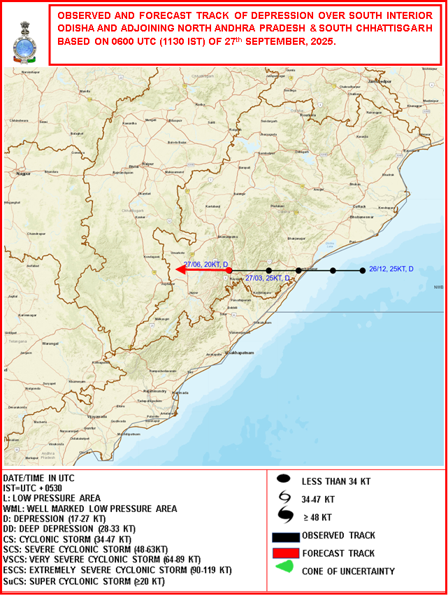 Observed & Forecast Track based on 06:00:00 UTC of 27-09-2025 |