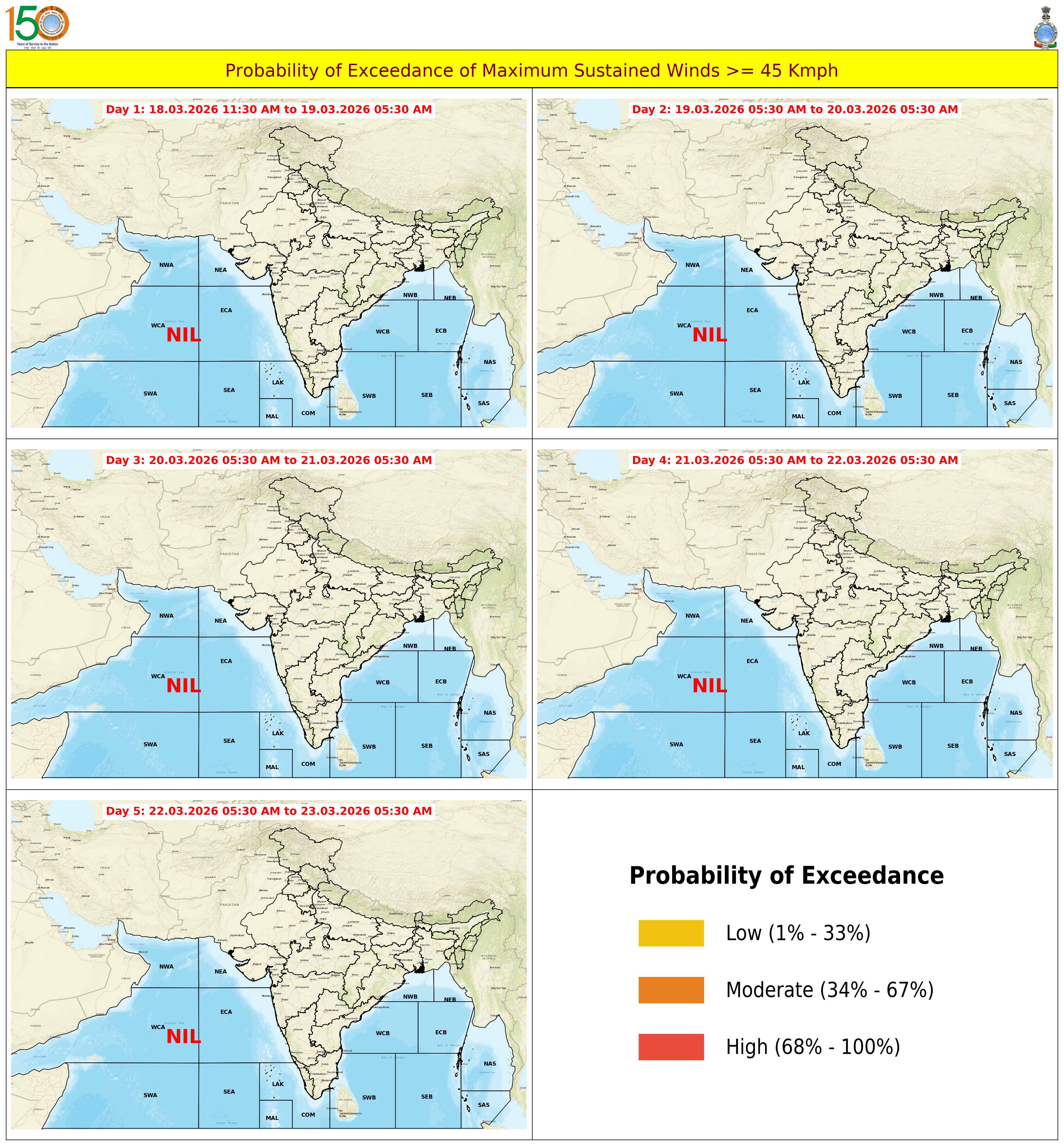 Probability of Exceedance 45Kmph (25 Knots) based on 03:00:00 UTC of 19-10-2023 |