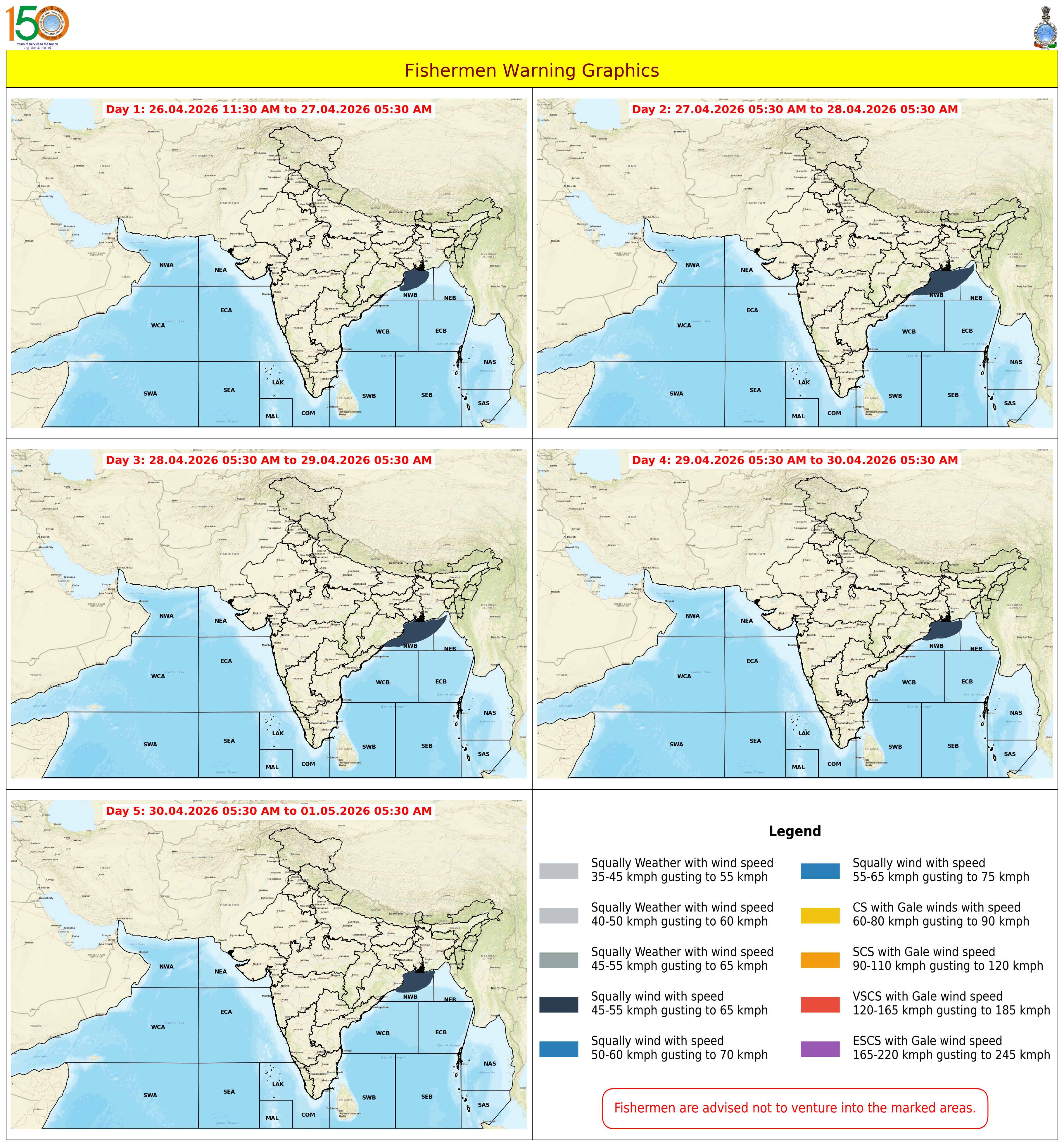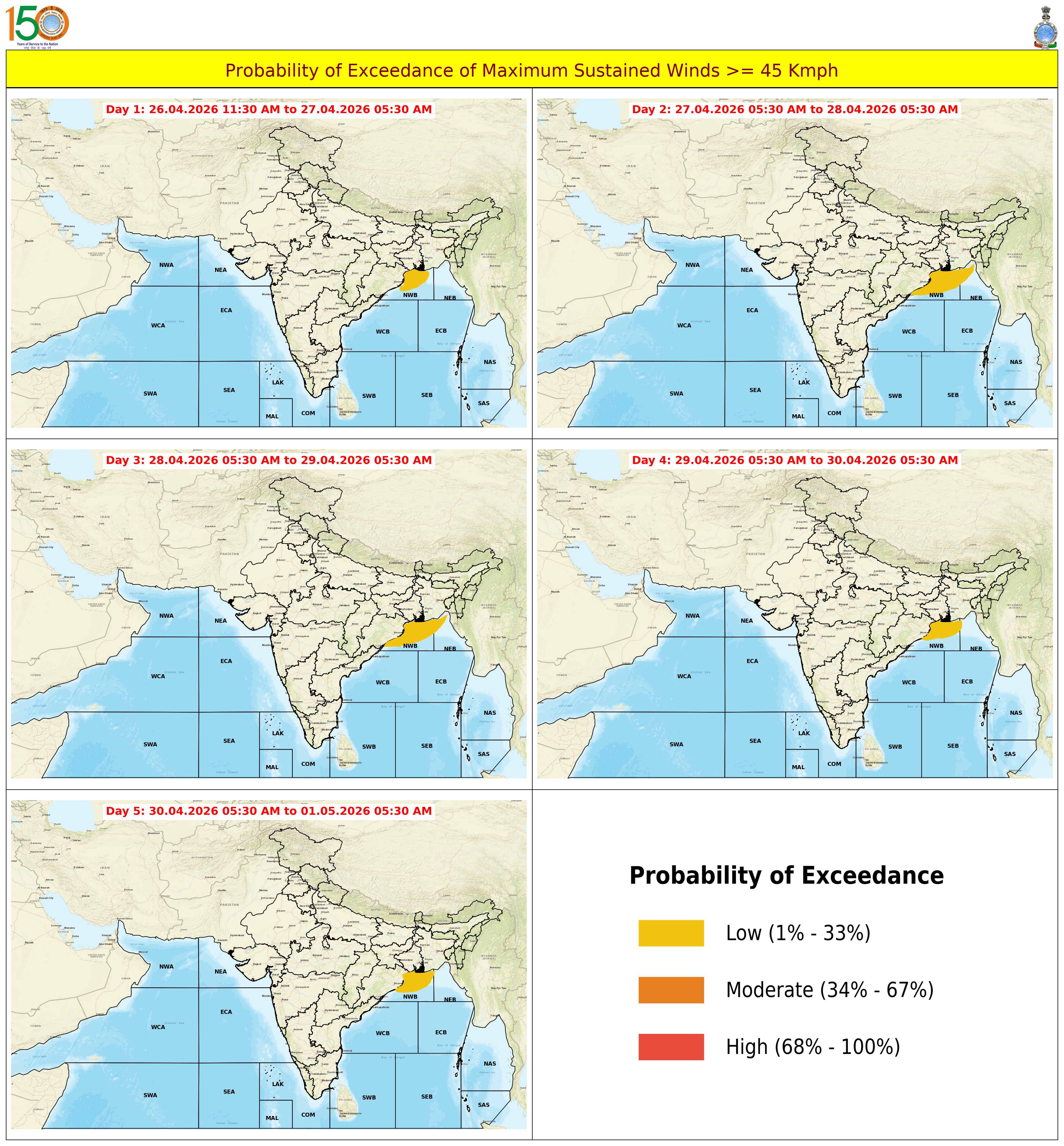 Probability of Exceedance 45Kmph (25 Knots) based on 03:00:00 UTC of 26-07-2025 |