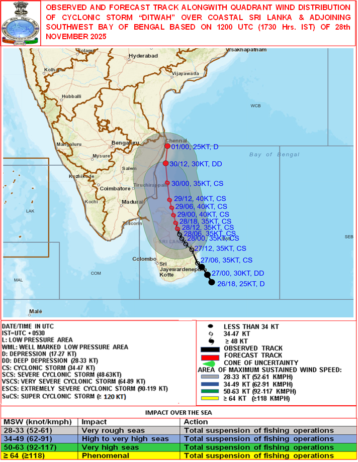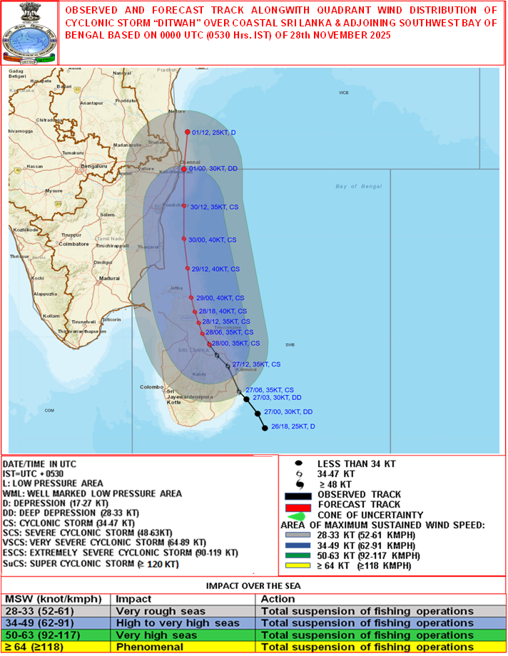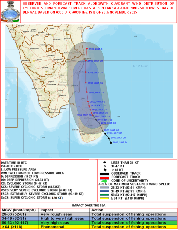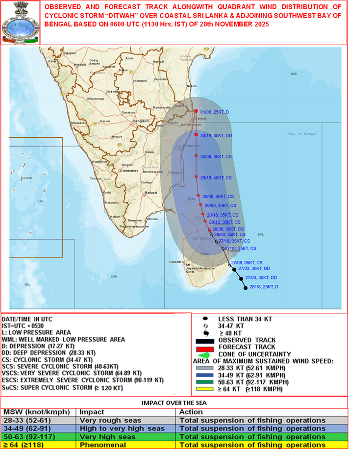 Quadrant Wind Graphics based on 06:00:00 UTC of 28-11-2025 |