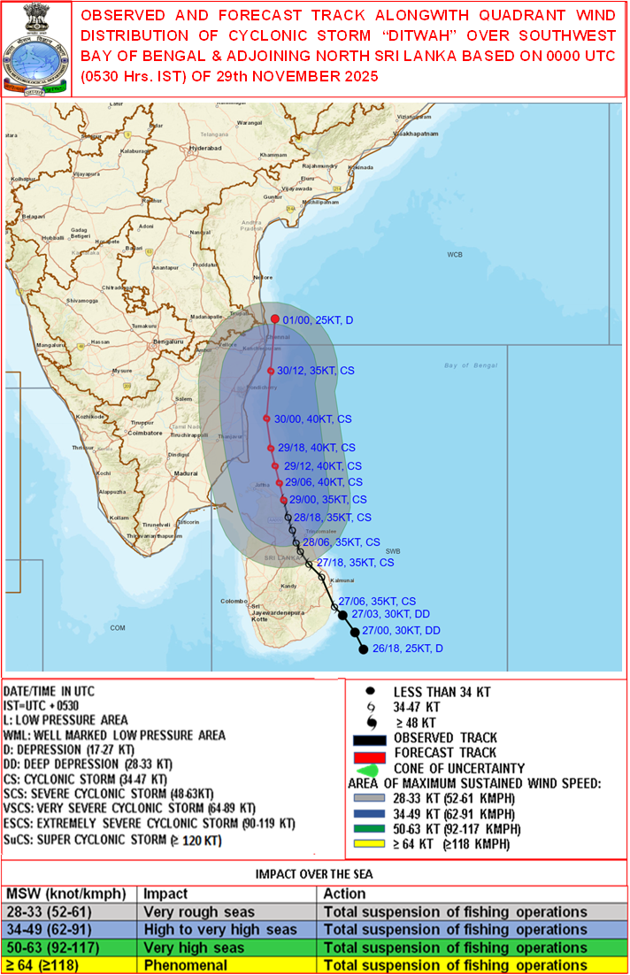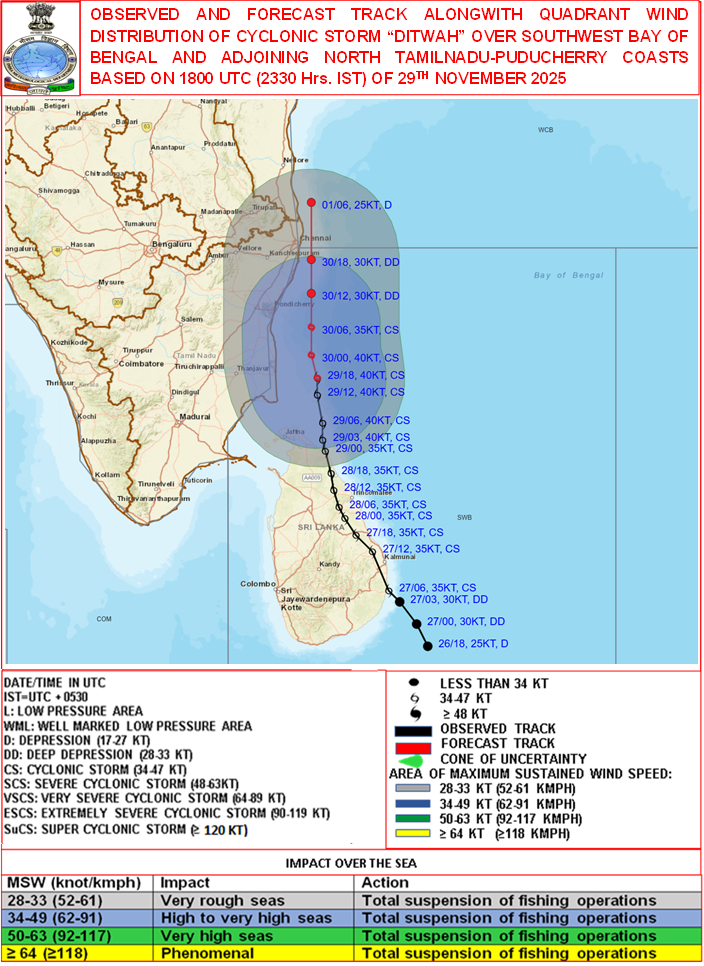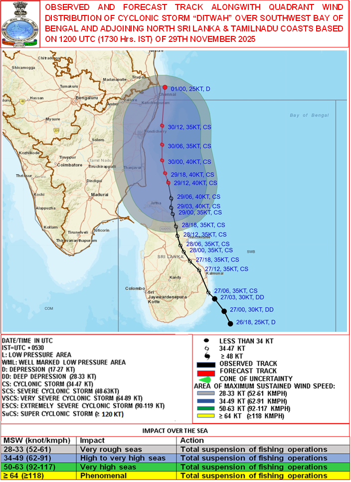 Quadrant Wind Graphics based on 06:00:00 UTC of 29-11-2025 |