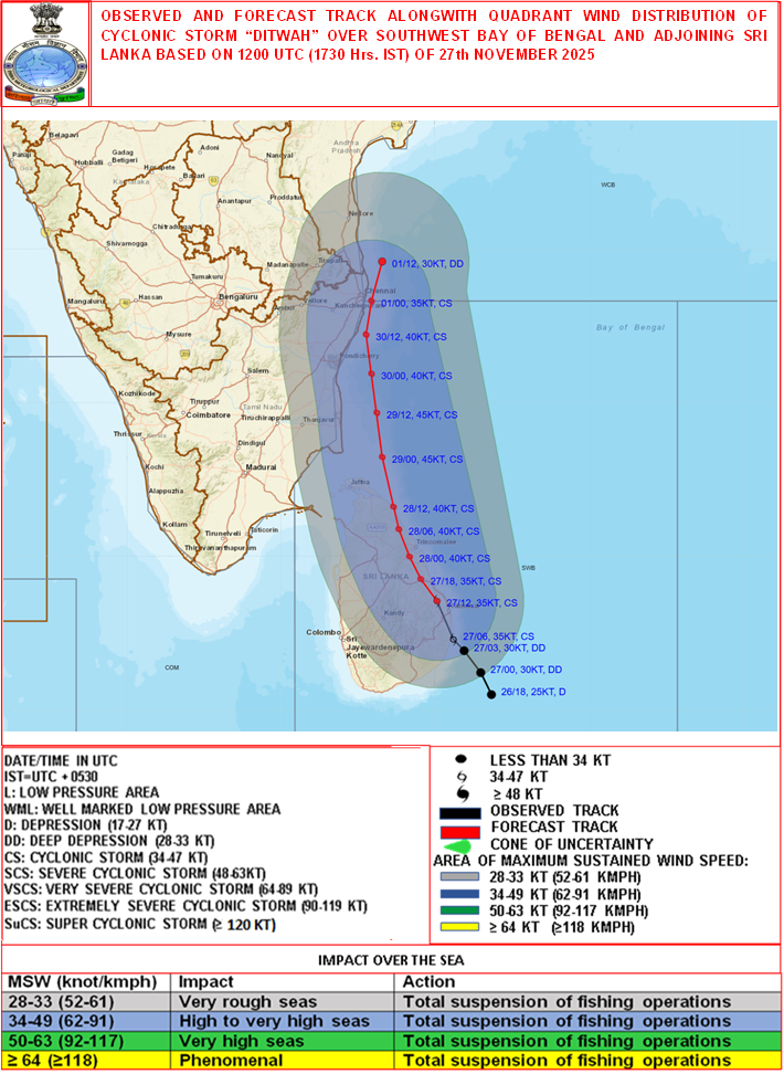 Quadrant Wind Graphics based on 12:00:00 UTC of 27-11-2025 |