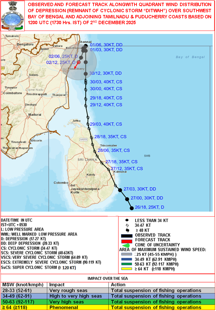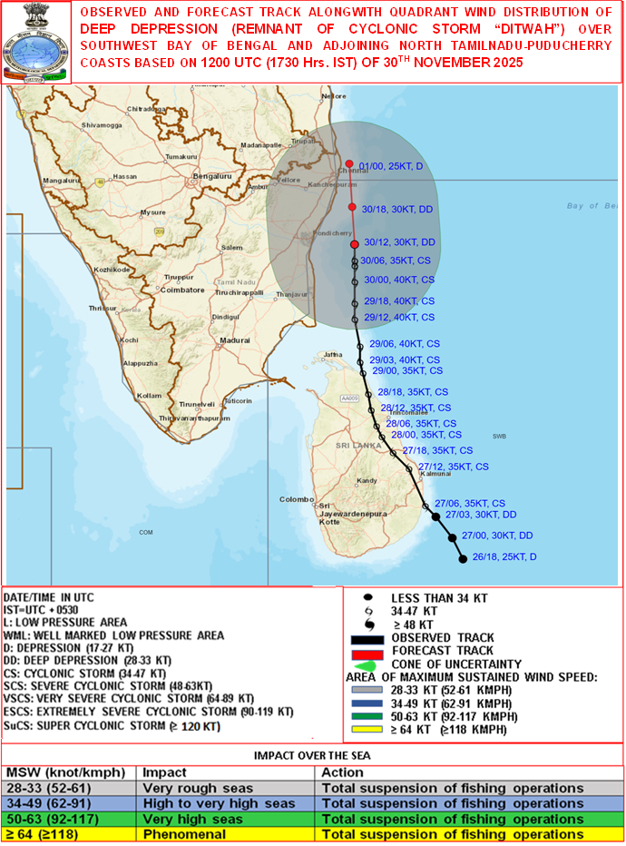 Quadrant Wind Graphics based on 12:00:00 UTC of 30-11-2025 |