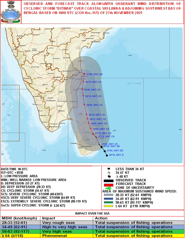 Quadrant Wind Graphics based on 06:00:00 UTC of 27-11-2025 |