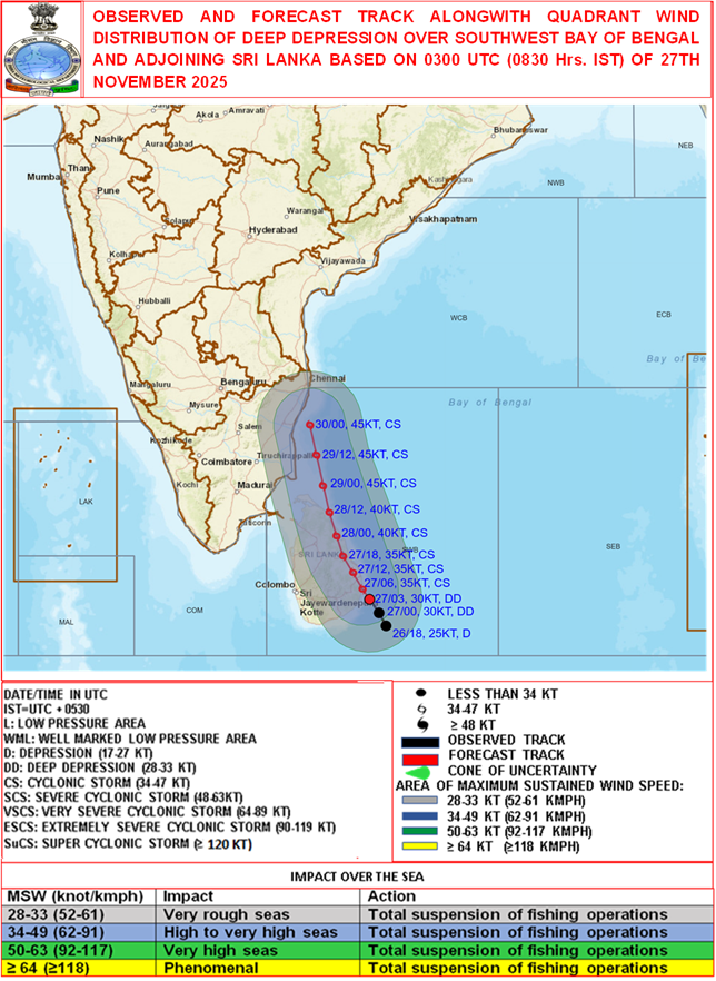Quadrant Wind Graphics based on 03:00:00 UTC of 27-11-2025 |
