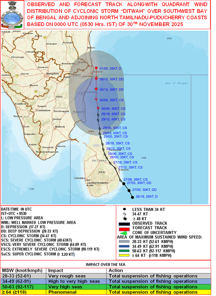 Quadrant Wind Graphics based on 06:00:00 UTC of 30-11-2025 |