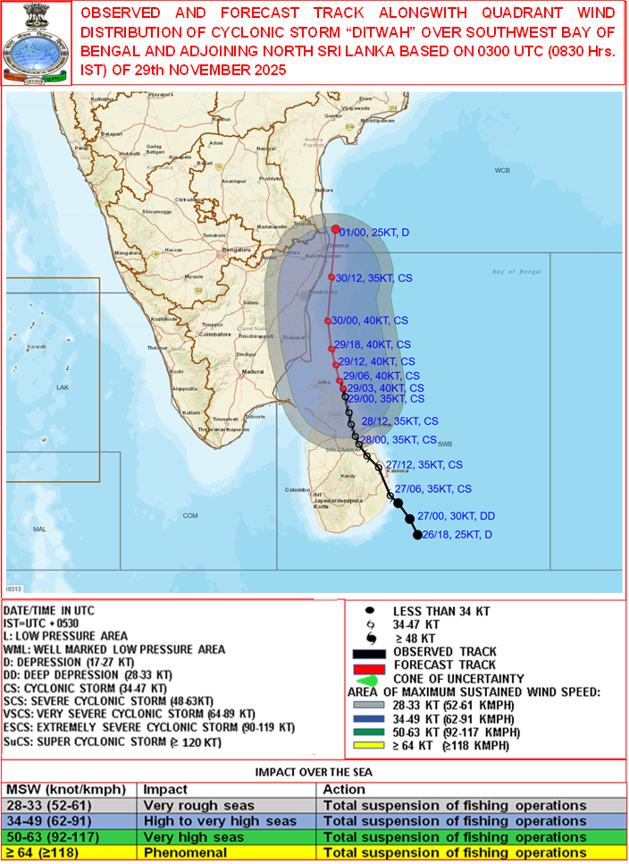 Quadrant Wind Graphics based on 06:00:00 UTC of 29-10-2025 |